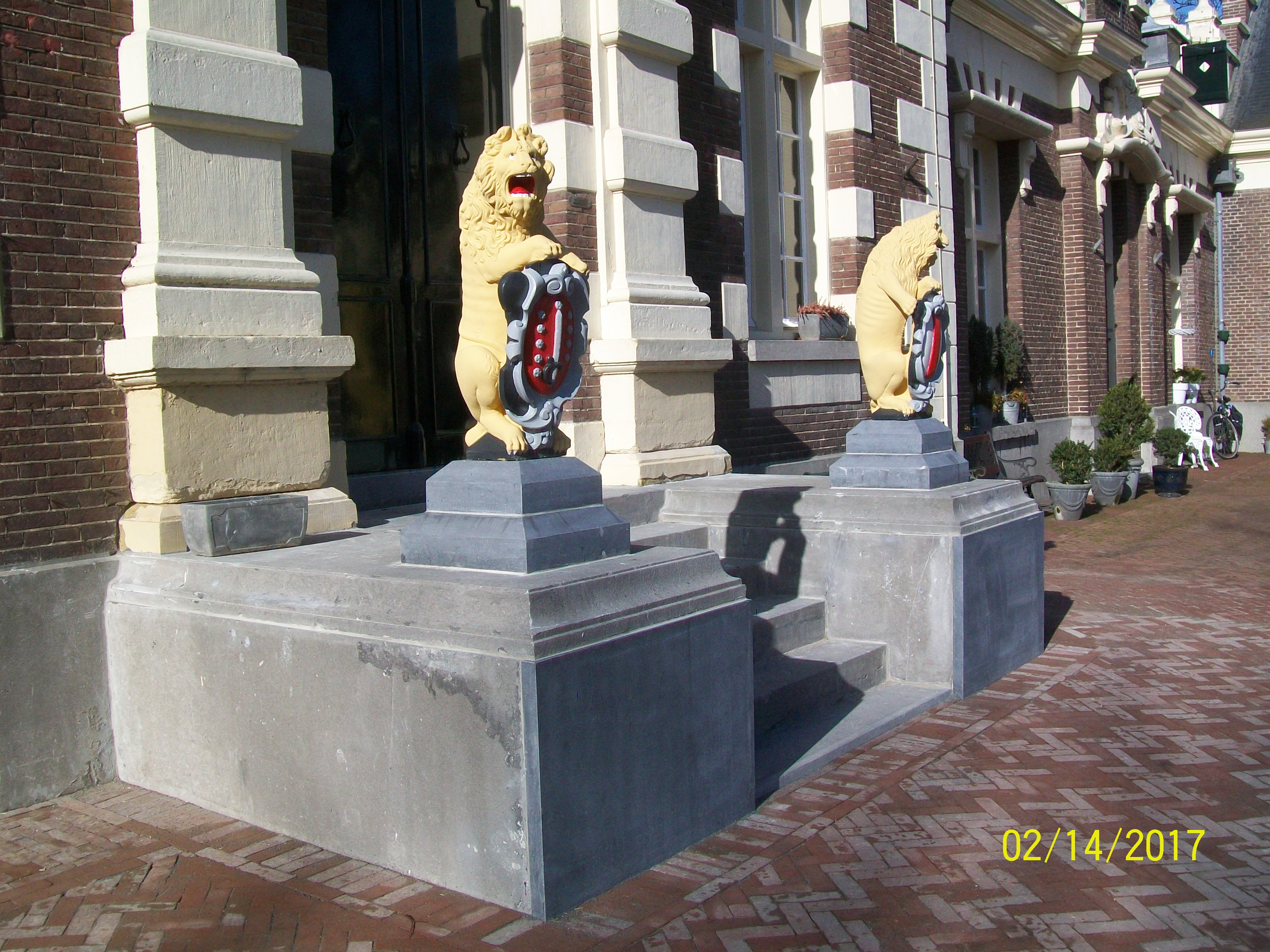 Zoals u wel gemerkt heeft zijn het hele bordes inclusief de leeuwen voor het hoofdgebouw van het Asyl al weer een hele tijd verdwenen. Geen nood ze worden gerestaureerd en komen weer terug.