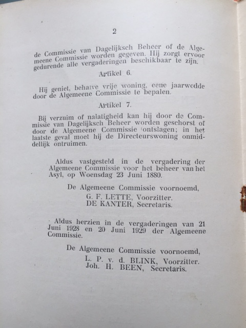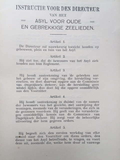 Zo legden de bewoners de belofte af, als zij in het Asyl werden toegelaten, dat zij de bepalingen van het reglement zouden naleven.